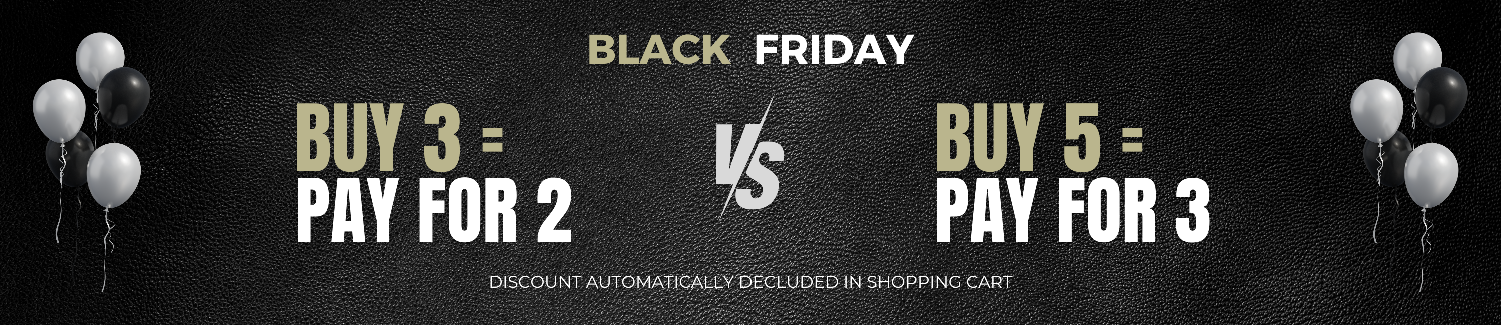 Black Friday: Buy 3, Pay for 2 & Buy 5, Pay for 3! Automatically applied